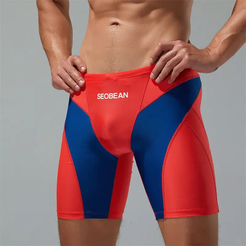 Seobean Kompressions-Schwimmboxer, lange Badeshorts für Herren