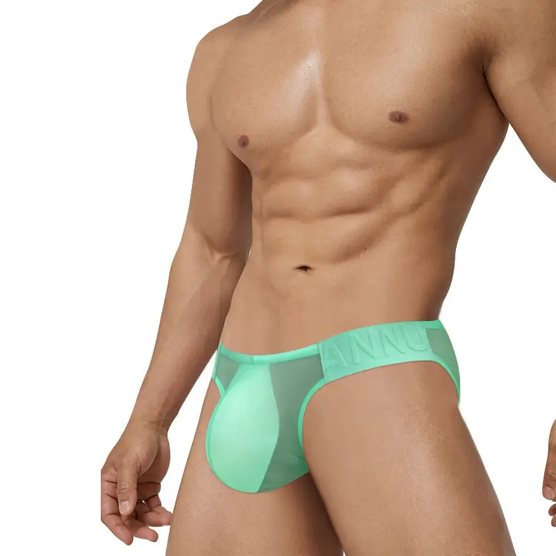Disfrute del máximo lujo con los calzoncillos de malla de cuerno de buey de corte alto de ADANNU , confeccionados con tela ultrafina. Tejido de red transparente 0,01. Estos calzoncillos tienen cinturas con relieve de estilo chino y vienen en vibrantes colores azul pavo real, verde jade y amarillo limón.