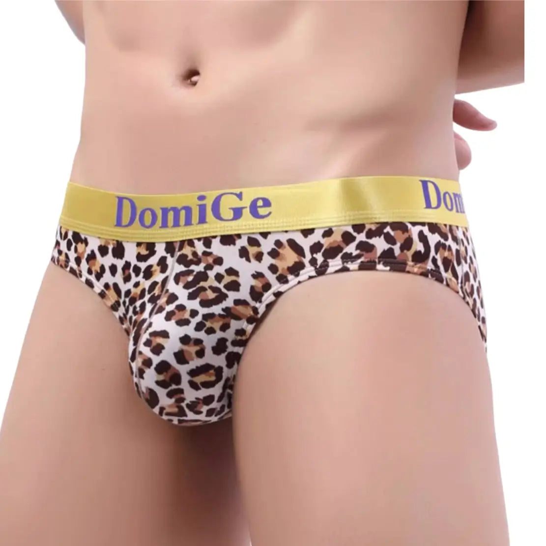 Calzoncillos tipo bikini con estampado de leopardo amarillo para hombre de DomiGe