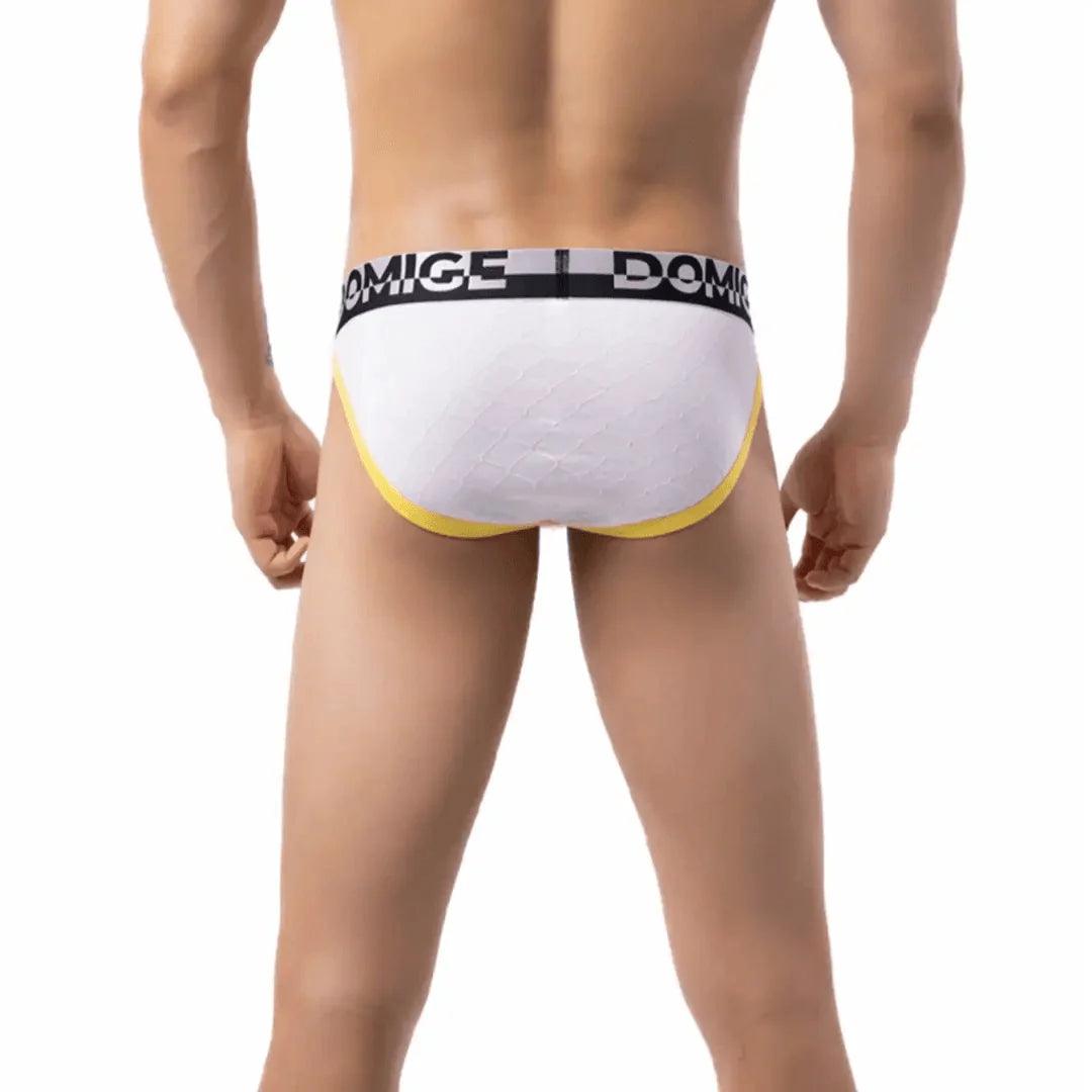 Mejora tu guardarropa diario con los calzoncillos de talle bajo de DomiGe. Confeccionados con una mezcla de 93 % algodón y 7 % spandex, estos calzoncillos ofrecen comodidad y estilo. Los patrones florales únicos y la cintura con el logo de DomiGe irradian sofisticación. La bolsa en forma de calabaza garantiza soporte y comodidad, mientras que el diseño oculto de la entrepierna y la cintura alta dividida brindan movimiento sin restricciones. Adopte la combinación perfecta de moda y funcionalidad.