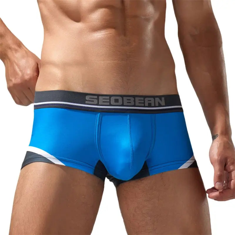 Upgrade your everyday essentials with Seobean Men's Trunks, designed for style, comfort, and functionality. Featuring a low-rise fit, these trunks offer a bold yellow design with blue and white accents for a modern look. Made from 90.4% polyester and 9.6% spandex, they provide superior stretch, durability, and moisture-wicking properties. The supportive pouch enhances comfort and keeps everything in place, making these undies perfect for daily wear, sports, or lounging.