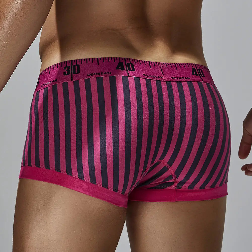 Elevar su Los calzoncillos tipo bóxer de tiro bajo de primera calidad de Seobean, diseñados para el hombre moderno, son ideales para el uso diario. Con una suave mezcla de 92 % algodón y 8 % elastano, estos calzoncillos ofrecen una sensación ligera y transpirable que te mantiene fresco todo el día. Con un elegante patrón de rayas y una bolsa contorneada de una sola capa, brindan un amplio espacio para brindar comodidad y soporte, lo que garantiza un ajuste perfecto. Perfectos para relajarse o para hacer ejercicio, nuestros calzoncillos tipo bóxer son lo último en ropa interior masculina.