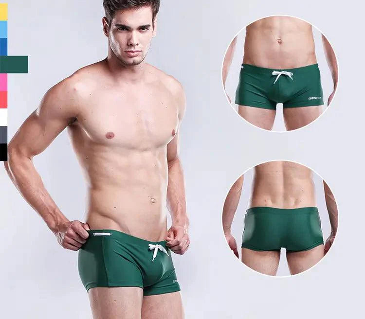 Crafted for the modern man who values both fashion and functionality, these swim trunks exude a professional vibe while maintaining a hint of sexiness. The hot spring shorts are designed to provide a snug fit without compromising on freedom of movement, allowing you to swim and play with ease.