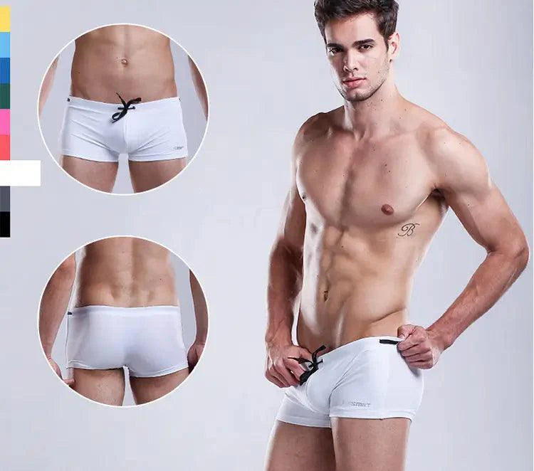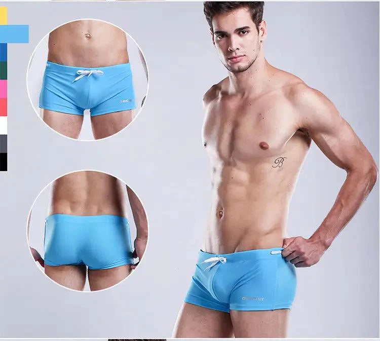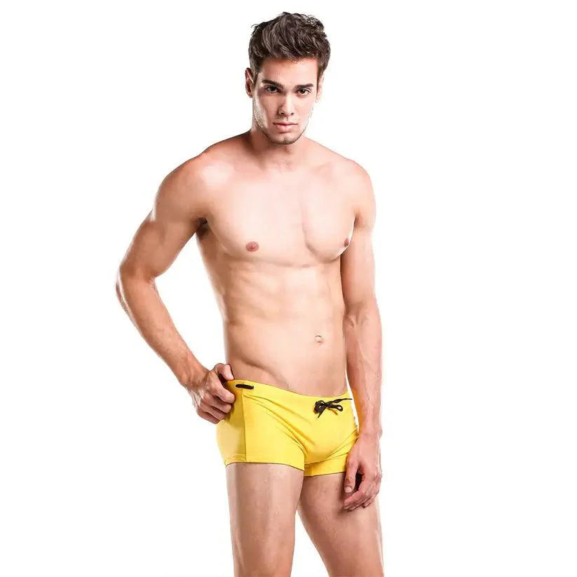 Guys Swim Trunks made from a blend of 82% Nylon and 18% Spandex, these low-waist swim trunks are not only stylish but also comfortable to wear. The simple yet elegant design of these trunks makes them a versatile choice for any water activity.