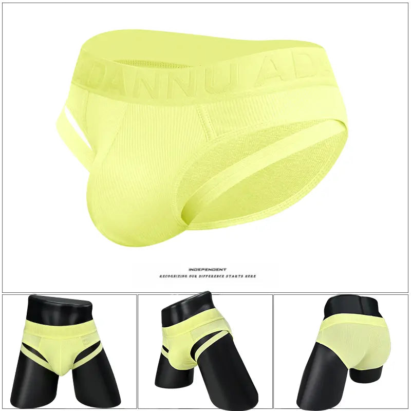 Experience ultimate comfort with ADANNU's low-rise briefs, crafted from ribbed fabric in vibrant shades of yellow, green, and purple. Designed for the modern man who seeks style and function, these briefs offer a snug fit with eye-catching national-style embossed waistband logos.