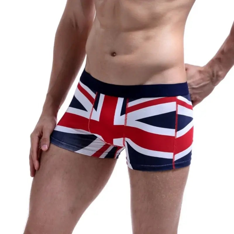 Elevate your casual comfort with Seobean's patriotic boxer shorts. Crafted from a blend of soft rayon, breathable acrylic, and stretchy spandex, these low-rise, oversized boxers feature a bold national flag print, perfect for lounging or layering. Stay cool and stylish in these versatile undergarments.